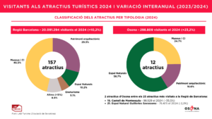 Segons l’informe de Visitants als Atractius Turístics a la Regió de Barcelona 2024, elaborat pel LAB Turisme, de Diputació de Barcelona, s’observa el següent: